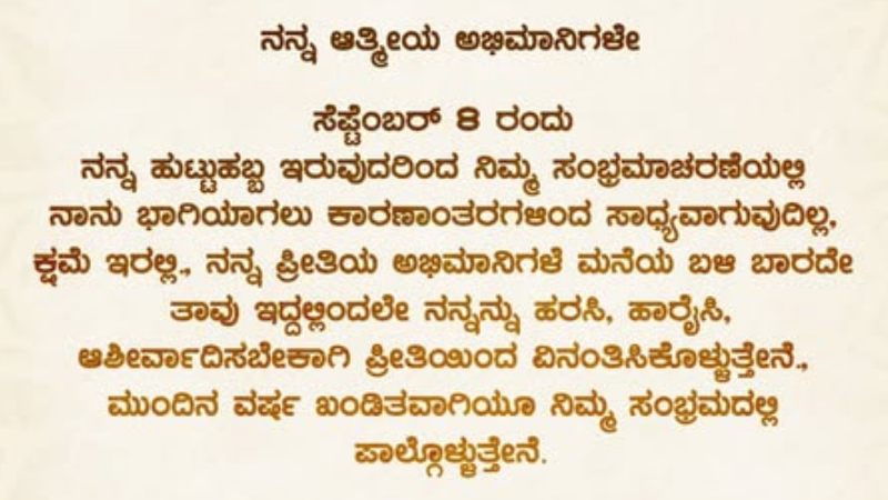 ಈ ಬಾರಿ ಸೆ.8ರಂದು ಹುಟ್ಟುಹಬ್ಬವನ್ನು ಆಚರಿಸಿಕೊಳ್ತಿಲ್ಲ ಮನೆ ಹತ್ತಿರ ಯಾರೂ ಬರಬೇಡಿ ಎಂದು ಧನ್ವೀರ್ ಅಭಿಮಾನಿಗಳಿಗೆ ವಿನಂತಿ ಮಾಡಿಕೊಂಡಿದ್ದಾರೆ. ಸೋಶಿಯಲ್ ಮೀಡಿಯಾದಲ್ಲಿ ಪೋಸ್ಟ್ ಹಾಕಿರುವ ಧನ್ವೀರ್ ಕಾರಣಾಂತರಗಳಿಂದ ಈ ಬಾರಿ ಹುಟ್ಟುಹಬ್ಬ ಆಚರಿಸಿಕೊಳ್ಳುತ್ತಿಲ್ಲ. ತಾವು ಇದ್ದಲ್ಲೇ ಹರಸಿ ಹಾರೈಸಿ, ಮುಂದಿನ ವರ್ಷ ಸಿಗುತ್ತೇನೆ ಎಂದು ಬರೆದುಕೊಂಡಿದ್ದಾರೆ. ಇದನ್ನೂ ಓದಿ: ಮದ್ವೆಯಲ್ಲಿ ಅನುಶ್ರೀ ಉಟ್ಟ ಸೀರೆಯ ಬೆಲೆ 2.5 ಲಕ್ಷ ಅಲ್ಲ ಕೇವಲ 2,700 ರೂ.