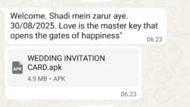 ಸೈಬರ್ ವಂಚನೆಗೊಳಗಾದ ವ್ಯಕ್ತಿಗೆ ಆ.20ರಂದು ವಾಟ್ಸಪ್ನಲ್ಲಿ ಅಪರಿಚಿತ ನಂಬರ್ನಿಂದ ಮೆಸೇಜ್ ಬಂದಿತ್ತು. ಸಂದೇಶದಲ್ಲಿ 30/08/2025ರಂದು ಮದುವೆಗೆ ತಪ್ಪದೇ ಬರಬೇಕು. ಪ್ರೀತಿಯು ಸಂತೋಷದ ದ್ವಾರವನ್ನು ತೆರೆಯುವ ಕೀಲಿ ಕೈಯಾಗಿದೆ ಎಂದು ಬರೆದಿದ್ದರು. ಜೊತೆಗೆ ಪಿಡಿಎಫ್ ಫೈಲ್ವೊಂದನ್ನು ಕಳುಹಿಸಿದ್ದರು.ಇದನ್ನೂ ಓದಿ: ಬಾಘಿ-4 ಟ್ರೈಲರ್ಗೆ ಮುಹೂರ್ತ ಫಿಕ್ಸ್