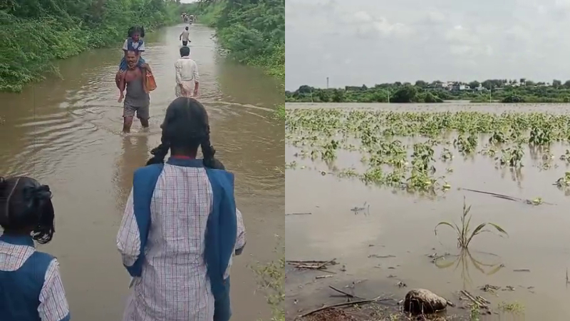 ಕಲಬುರಗಿಯ ಗಾಣಗಾಪೂರದ ಸಂಗಮ ಕ್ಷೇತ್ರದ ಪಾರಾಯಣ ಮಂಟಪ, ಫತ್ತರಗ ಗ್ರಾಮದ ಪಶುಸಂಗೋಪನಾ ಆಸ್ಪತ್ರೆಗೂ ನೀರು ನುಗ್ಗಿದೆ. ಭಾರೀ ಮಳೆಯಿಂದಾಗಿ ಜೇವರ್ಗಿ ತಾಲೂಕಿನ ಮಾಹೂರ ಗ್ರಾಮದ ಸಂರ್ಪಕ ಕಡಿತಗೊಂಡಿದೆ. ಪ್ರವಾಹವನ್ನೂ ಲೆಕ್ಕಿಸದೇ ಪೋಷಕರು ಮಕ್ಕಳನ್ನು ಭುಜದ ಮೇಲೆ ಕೂರಿಸಿಕೊಂಡು ಶಾಲೆಗೆ ಕಳುಹಿಸಿದ್ದಾರೆ. ಕಲಬುರಗಿಯ ಪ್ರವಾಹ ಪೀಡಿತ ಪ್ರದೇಶಗಳಿಗೆ ಸಚಿವ ಪ್ರಿಯಾಂಕ್ ಖರ್ಗೆ, ಜಿಲ್ಲಾಧಿಕಾರಿ ಫೌಜಿಯಾ ತರುನ್ನುಮ್ ಭೇಟಿ ನೀಡಿದ್ದಾರೆ. ನಮಗೆ ಶಾಶ್ವತ ಪರಿಹಾರ ಕಲ್ಪಿಸಿ ಅಂತಾ ಡಿಸಿ ಫೌಜಿಯಾ ಕಾಲಿಗೆ ಬಿದ್ದು ಸಂತ್ರಸ್ತರು ಅಳಲು ತೋಡಿಕೊಂಡಿದ್ದಾರೆ. ಇದನ್ನೂ ಓದಿ: ಹಾಸನಾಂಬೆ ದರ್ಶನಕ್ಕೆ ವಿಶೇಷ ಪ್ಯಾಕೇಜ್ – ಬೆಂಗಳೂರಿಂದ 2016 ರೂ., ಮೈಸೂರಿಂದ 1250 ರೂ.
