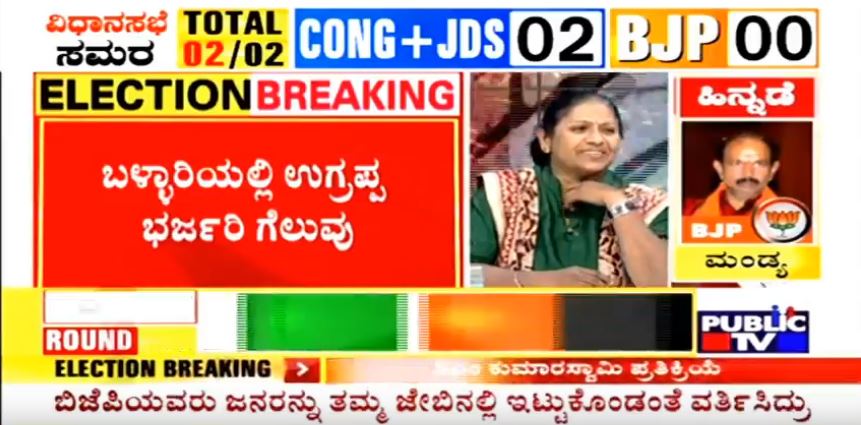 ಬೆಳಗ್ಗೆ: 58: ಬಳ್ಳಾರಿಯಲ್ಲಿ ಬಿಜೆಪಿ ಅಭ್ಯರ್ಥಿ ಶಾಂತಾಗೆ ಭಾರೀ ಹಿನ್ನಡೆ