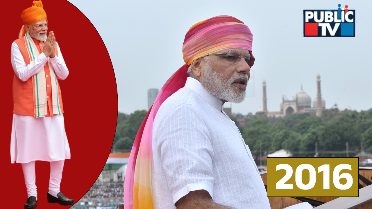 2016: ಕೆಂಪು, ಗುಲಾಬಿ ಮತ್ತು ಹಳದಿ ರಾಜಸ್ಥಾನಿ ಪೇಟವನ್ನು ಸರಳ ಕುರ್ತಾ ಮತ್ತು ಚೂಡಿದಾರ್ ಪೈಜಾಮಾದೊಂದಿಗೆ ಮೋದಿ ಧರಿಸಿದ್ದು ವಿಶೇಷವಾಗಿತ್ತು.