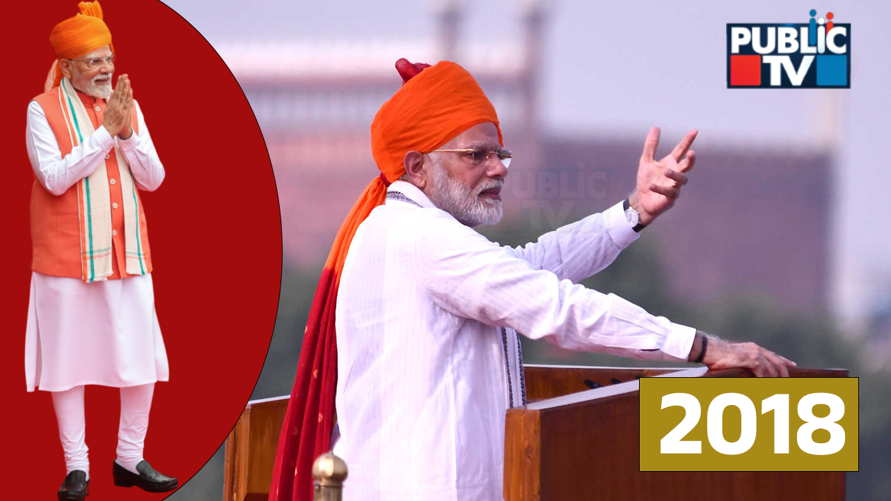 2018: ಪೂರ್ಣ ತೋಳಿನ ಕುರ್ತಾ-ಪೈಜಾಮ ಮತ್ತು ಉಪರ್ಣ ಧರಿಸಿದ್ದರು. ಗಾಢವಾದ ಕೇಸರಿ ಮತ್ತು ಕೆಂಪು ಪೇಟವನ್ನು ಮೋದಿ ಧರಿಸಿದ್ದು ಗಮನ ಸೆಳೆದಿತ್ತು.