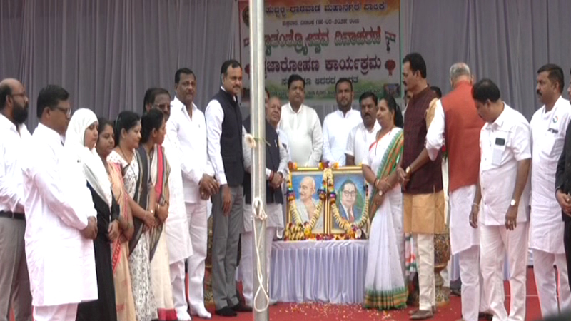 ಹುಬ್ಬಳ್ಳಿ-ಧಾರವಾಡ ಮಹಾನಗರ ಪಾಲಿಕೆ (Hubballi Dharwad Municipal Corporation) ವತಿಯಿಂದ ಆಯೋಜಿಸಿದ್ದ ಸ್ವಾತಂತ್ರ್ಯ ದಿನಾಚರಣೆ ಕಾರ್ಯಕ್ರಮದಲ್ಲಿ ನಗರಪಾಲಿಕೆ ಆಯುಕ್ತ ರುದ್ರೇಶ ಘಾಳಿ ಅವರಿಂದ ಧ್ವಜಾರೋಹಣ ನೆರವೇರಿಸಿದರು. ಬಳಿಕ ಉಪಸ್ಥಿತರಿದ್ದ ಶಾಸಕ ಮಹೇಶ ಟೆಂಗಿನಕಾಯಿ ಡಾ.ಬಿ.ಆರ್ ಅಂಬೇಡ್ಕರ್ ಹಾಗೂ ಮಹಾತ್ಮ ಗಾಂಧೀಜಿ ಅವರ ಭಾವಚಿತ್ರಕ್ಕೆ ಗೌರವ ಸಮರ್ಪಣೆ ಮಾಡಿದರು. ಇದನ್ನೂ ಓದಿ: 79ನೇ ಸ್ವಾತಂತ್ರ್ಯ ದಿನಾಚರಣೆ – ಬೆಂಗ್ಳೂರಿನ ಮಾಣಿಕ್ ಷಾ ಮೈದಾನದಲ್ಲಿ ಧ್ವಜಾರೋಹಣ ನೆರವೇರಿಸಿದ ಸಿಎಂ