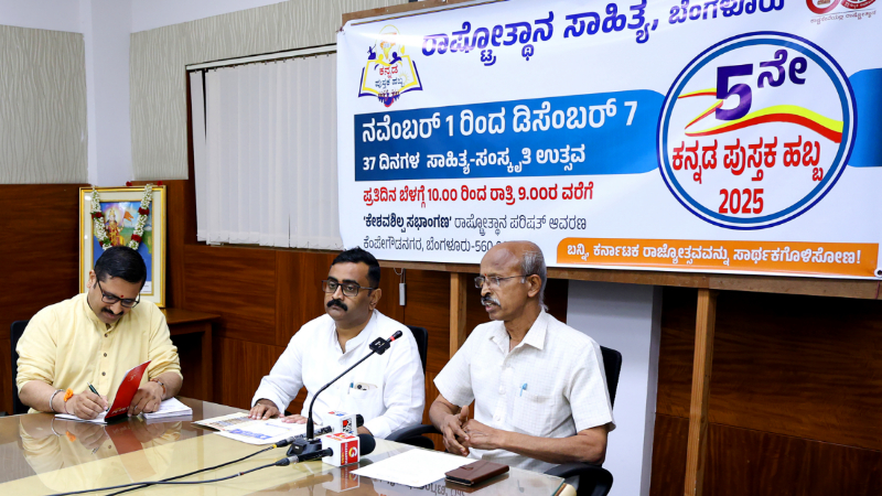 ಕನ್ನಡ ರಾಜ್ಯೋತ್ಸವ (Kannada Rajyotsava) ಪ್ರಯುಕ್ತ ರಾಷ್ಟ್ರೋತ್ಥಾನ ಸಾಹಿತ್ಯ ಆಯೋಜಿಸುವ 5ನೇ ವರ್ಷದ ಕನ್ನಡ ಪುಸ್ತಕ ಹಬ್ಬದ ಕುರಿತು ಇಂದು ರಾಷ್ಟ್ರೋತ್ಥಾನ ಪರಿಷತ್ನ ಕೇಶವ ಶಿಲ್ಪದಲ್ಲಿ ಸುದ್ದಿಗೋಷ್ಠಿ ನಡೆಯಿತು. ಇದನ್ನೂ ಓದಿ: SVR @ 50 – ಕನ್ನಡ ಚಿತ್ರರಂಗದ ಗಣ್ಯರು ಭಾಗಿ