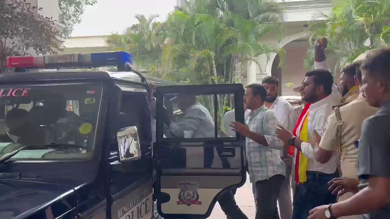 ಕರವೇ ರಾಜ್ಯಾಧ್ಯಕ್ಷ ಟಿ.ಎ.ನಾರಾಯಣಗೌಡರ ಮಾರ್ಗದರ್ಶನದಲ್ಲಿ ನೂರಾರು ಕಾರ್ಯಕರ್ತರು ಪಂಚತಾರಾ ಹೋಟೆಲ್ನಲ್ಲಿ ಆರು ಮಂದಿ ಸಂಸತ್ ಸದಸ್ಯರ ಉಪಸ್ಥಿತಿಯಲ್ಲಿ ನಡೆಯುತ್ತಿದ್ದ ಕಾರ್ಯಕ್ರಮಕ್ಕೆ ವಿರೋಧ ವ್ಯಕ್ತಪಡಿಸಿದರು. ಸ್ಥಳದಲ್ಲಿ ಕೆಲಕಾಲ ಉದ್ವಿಗ್ನ ಪರಿಸ್ಥಿತಿ ನಿರ್ಮಾಣವಾಗಿತ್ತು. ಇದನ್ನೂ ಓದಿ: ಹರಾಜು ಮೂಲಕ ಮದ್ಯದ ಅಂಗಡಿಗಳ ಹಂಚಿಕೆ ಪ್ರಕ್ರಿಯೆಗೆ ಶೀಘ್ರವೇ ಚಾಲನೆ: ಆರ್.ಬಿ.ತಿಮ್ಮಾಪುರ್